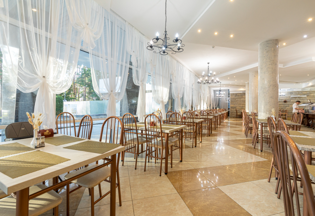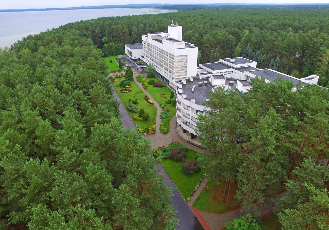 Санаторий «Сосны» находится на территории Нарочанского национального парка, что в Мядельском районе. Окруженный сосновым лесом и расположенный по соседству с двумя живописными озерами – Нарочь и Белое – этот санаторий представляет собой уникальное по красоте и природному богатству место. Для размещения гостей санатория «Сосны» в Минской области построены три жилых корпуса («Главный», «Круглый» и «Сосновый») и шесть коттеджей. Жилой фонд здравницы состоит из 118 номеров, которые рассчитаны на 206 мест. Доступны стандартные одноместные и двухместные (с одной или двумя комнатами) номера, а также номера «люкс» (трехкомнатный номер на три места). Все номера включают в себя оборудованный душевой кабиной санузел, телефон, телевизор, утюг и комплект всей необходимой для проживания мебели. Уборка производится ежедневно. Пребывание в санатории способствует нормализации работы сердечно-сосудистой системы и нервной системы, а здешний уникальный микроклимат улучшает обмен веществ и восстанавливает защитные силы организма и его сопротивляемость различным заболеваниям. Эти благотворные эффекты достигаются благодаря природным условиям Нарочанского заповедника: воздух тут насыщен смолистыми эфирными веществами, отрицательными ионами и азотом. В санатории организовано четырехразовое питание (шведский стол). Кроме того, при необходимости и по желанию доступно банкетное, детское и вегетарианское питание. Также работают кафе и бар. Здесь доступны разные виды отдыха. Для любителей спорта и подвижных игр открыты тренажерный зал, крытый бассейн площадью 30 квадратных метров и волейбольная площадка, а также предлагает свои услуги пункт проката спортивного инвентаря. Те, кому по нраву более спокойное и умиротворенное времяпрепровождение, смогут посетить баню и сауну или же просто почитать в библиотеке. Также в перечень услуг входят заказ экскурсий и Wi-Fi. Поскольку вблизи санатория есть сразу два озера, то гости «Сосен» могут посещать пляжи, которые обустроены кабинками для переодевания, шезлонгами, душевыми, туалетами и зонтами. Инфраструктура здравницы включает в себя и детскую площадку для юных гостей. Санаторий «Сосны» в Беларуси полностью соответствует современным стандартам отдыха и способен удовлетворить любые запросы и потребности отдыхающих всех возрастов.